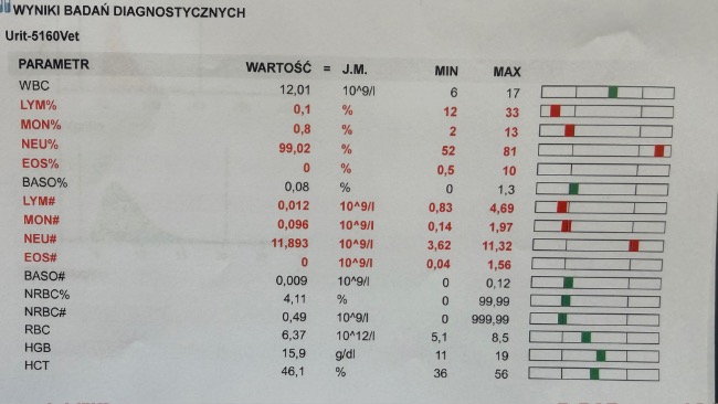 Wynik testu nie zostawia złudzeń. Skrajna limfopenia oznacza jedno, wirus niszczy jej układ odpornościowy i organizm przestaje się bronić. Do tego silna reakcja zapalna, wysoka gorączka sięgająca 40 stopni, wymioty, napięty, bolesny brzuch.