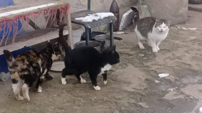 Stado liczyło 4 koty, w tym nasza seniorka, kotka w opłakanym stanie.
