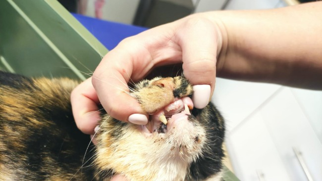 Połamane kły i zęby w fatalnym stanie. Zleciliśmy wykonie testów FiV FeLV niestety jest ViF dodatnia.