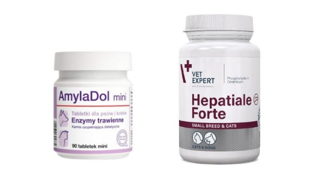 Wiola przyjmuje antybiotyki, preparat hepatiale, enzymy trawienne amyladol, witaminę B12, żelazo, i musi być na karmie gastro.