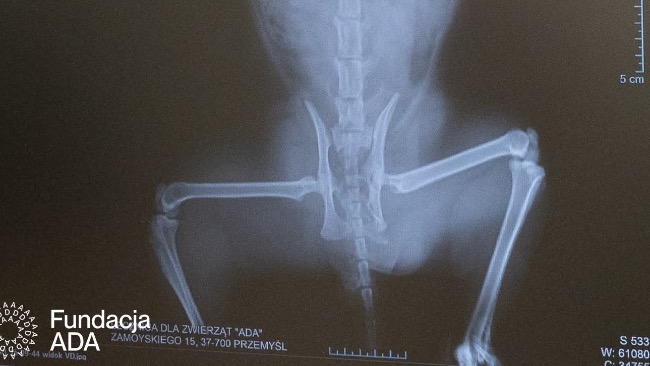 W klinice od razu rozpoczęliśmy walkę o jego życie. Po wstępnej stabilizacji wykonaliśmy badanie RTG – obraz był dramatyczny. Złamana miednica, poważne stłuczenia narządów wewnętrznych, ogromny ból przy każdym dotyku.