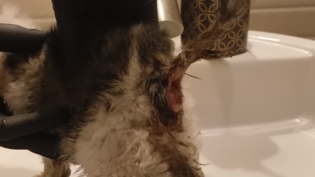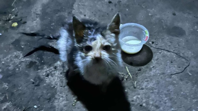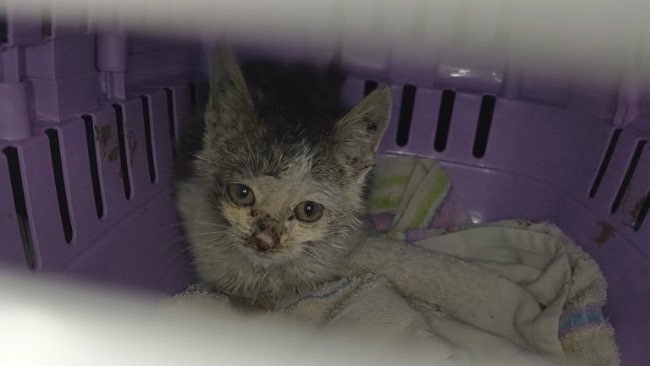 Zobaczyłyśmy to maleństwo i wiedzialysmy, że nie możemy tam zostawić. Kociak, o którym pisałyśmy wczoraj, jest już w Lublinie, bezpieczny, ale w bardzo złym stanie.