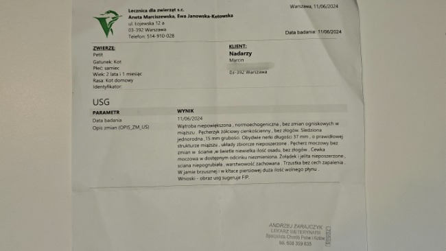 Niestety miesiąc temu bardzo poważnie zachorowałem. Mój brzuszek i klatka piersiowa wypełaniła się płynem i dostałem diagnozę- FIP.