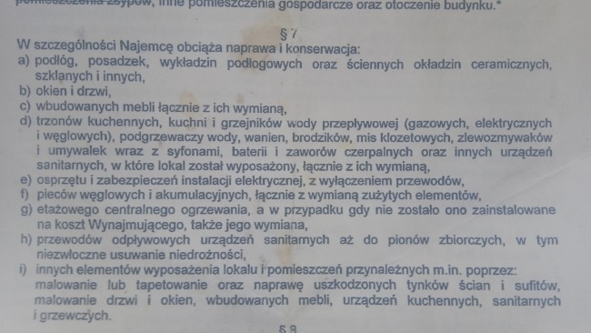 Dzień dobry. Mam na imię Patrycja. Jestem najemcą mieszkania socjalnego które ma bardzo niski standard i przez awarie instalacji wodnej zmniejszył on się jeszcze bardziej. Umowa zobowiązuje mnie do wszelkich napraw oprócz pionów budynku, niestety administracja to potwierdziła. Mieszkanie jest w nieocieplonej kamienicy, bez łazienki z prysznicem w kuchni. Ogrzewane farelką co jest bardzo kosztowne. Wczoraj już musiałam ją włączyć bo było 15stopni i dzieci narzekały na zimno, a licznik bije.