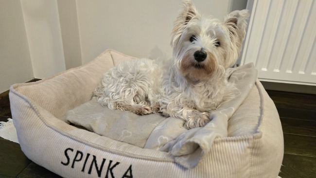 Spinka jest suczką rasy West Highland white terrier. Jest to bardzo pogodny, towarzyski, przyjazny i energiczny piesek, bez którego nie wyobrażam sobie życia. Odkąd zagościła u nas domu skradła nasze serca stając się członkiem rodziny.