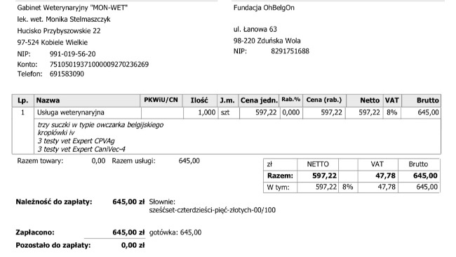 Po odebraniu suczek od razu pojechaliśmy z nimi do weterynarza, żeby zrobić im badania przed przekazaniem ich do domów tymczasowych: morfologia oraz testy na choroby zakaźne i odkleszczowe.