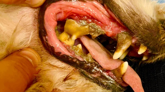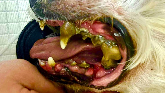 Zobaczcie proszę na te zdjęcia Kevina. Wszyscy go chcieli, kiedy schronisko dodało jego profil na stronę, ale nikt nie wiedział, co tak naprawdę kryje się za jego stanem zdrowia. Jego uzębienie jest w tragicznym stanie, co powoduje ogromny ból i cierpienie przy jedzeniu. Dodatkowo ma dwa guzy na ciele, które musimy usunąć w pierwszej kolejności i przebadać.