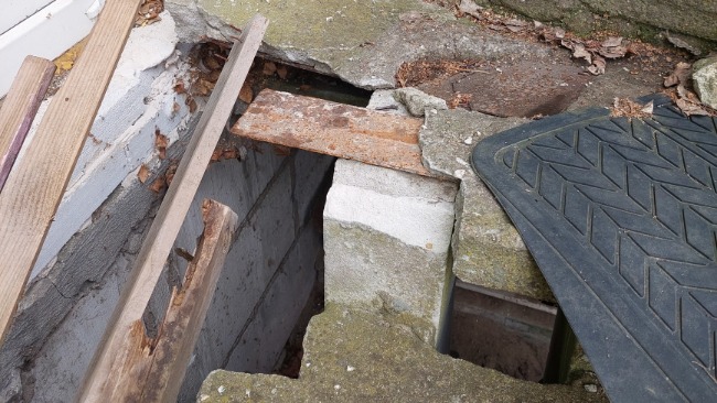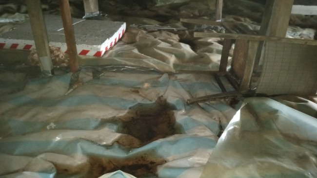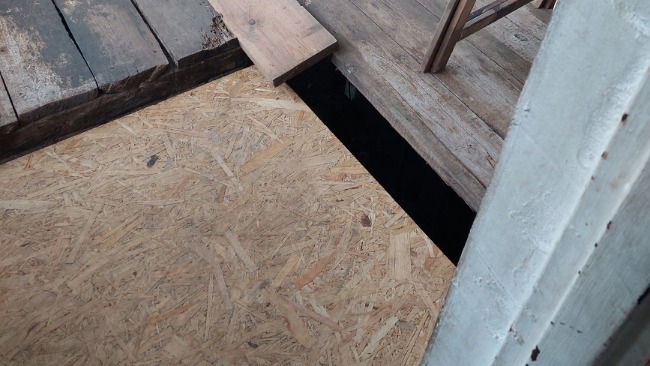 W kuchni jest totalnie zerwana podłoga, aż strach chodzić czy nie wpadnie się do piwnicy.