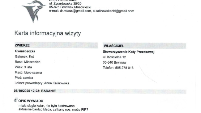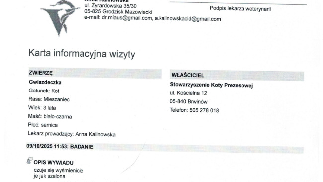 Zapytali jeszcze, jak trzymamy koty, zapłacili pięćset złotych – jakby odkupując własny spokój – i odjechali.