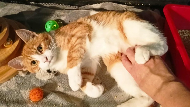 Kocia matka dość długo nie wyprowadzała kocurka z ukrycia i o ile udało nam się w lipcu odłowić jego siostrę Mandarynkę, która od dawna jest już w swoim domu stałym, o tyle on dzieciństwo spędził na działkach z matką. Kocia mama jest już po zabiegu sterylizacji i wróciła w miejsce bytowania. Rodos planowo miał zostać w stadzie kotów wż a w późniejszym czasie przejść zabieg kastracji, jednak świat ludzi i kontakt z człowiekiem zaczął go mocno interesować. Nawet pozwalał sobie na wejście do domku i głaskanie przez Panią, u której się stołował. Nie było wyjścia, warto było go odłowić, dać mu szanse na inne życie i sprawdzić, czy będzie z niego kot kanapowy. Rodos nie przejawia żadnej agresji, po pierwszych dniach strachu, spokojnie przyjmuje zmiany, które go spotkały. Póki co ma kwarantannę i przebywa w kenelowej klatce, ale głaskany chętnie odsłania brzuszek. Kocurek dostał szansę, grzeje się w ciepełku w domu tymczasowym.