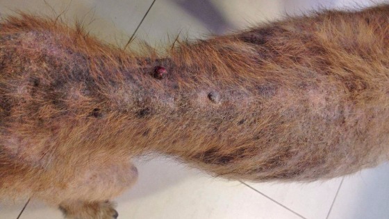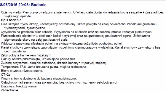 Jego skóra jest gorąca, sierść okropnie przerzedzona. Po jego ciele skacze niezliczona ilość pcheł.