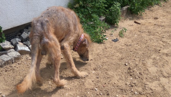 Zastajemy na miejscu wysokiego, chudego psa, z wystającymi żebrami i kośćmi miednicowymi.
