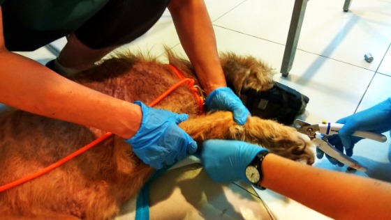 Pobrano też zeskrobiny, przycięto pazury, które utrudniały chodzenie.