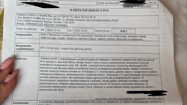 Kobieta, która jedyne leki jakie przyjmowała to doraźne leki przeciwbólowe jak większość z nas. Na początku byliśmy pewni, że to na pewno jakaś pomyłka, albo coś na pewno nie groźnego, może po prostu stan zapalny.