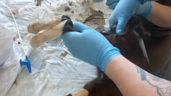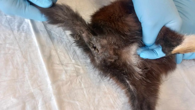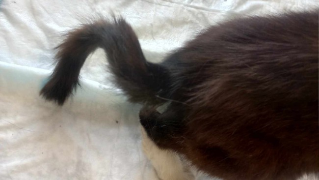 Kot nie może się wypróżnić, kał zatrzymujący mu się w ciele rozkłada się w jego jelitach... odbyt jest po prostu rozwalony💔💔