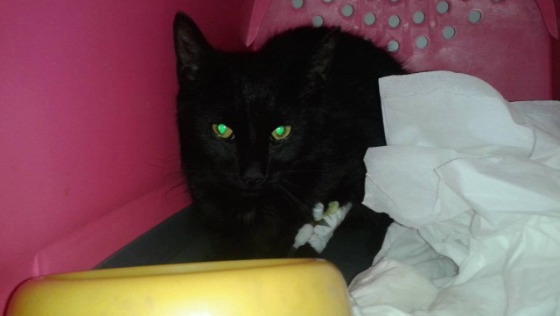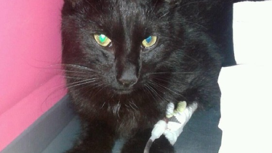 SEKITAN to niespełna roczny kocurek, który został zebrany ze środka jezdni, gdzie leżał potącony przez samochód. Uderzony w głowę, z zakrwawionym pyszczkiem, przekrwionym okiem i nie reagującą na światło źrenicą. Kocurek z podejrzeniem krwiaka wewnątrzczaszkowego (brak reakcji wzrokowych i wechowych) trafił do lecznicy, pod całodobową opiekę weterynaryjną. Pobyt w szpitaliku w oczekiwaniu na wchłonięcie się krwiaka i koniecznosć ciągłej obserwacji weterynaryjnej, w razie pogorszenia stanu kota, leki, odżywianie dożyle - to spore koszty, ale dzięki temu kotek ma sznsę na powrót do zdrowia.