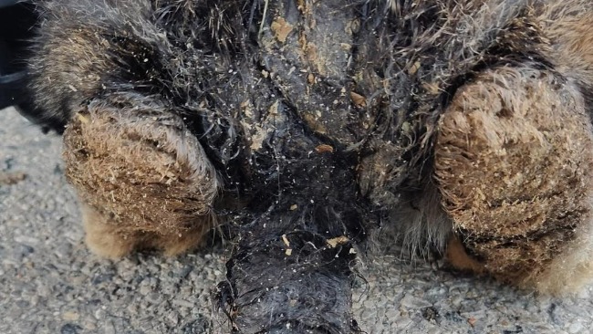 Królinka to baran francuski, który waży zaledwie 3kg. Powinna przynajmniej 5 albo nawet i 6kg. Widać po niej, że jest zmęczona. Stan jej sierści wskazuje na to, że musiała błąkać się naprawdę długo...