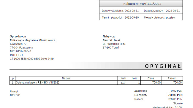 Ta zbiórka jest na opłacenie sierpniowego pobytu Reksia. Jak tylko pojawi się rachunek, umieszczę go na stronie.