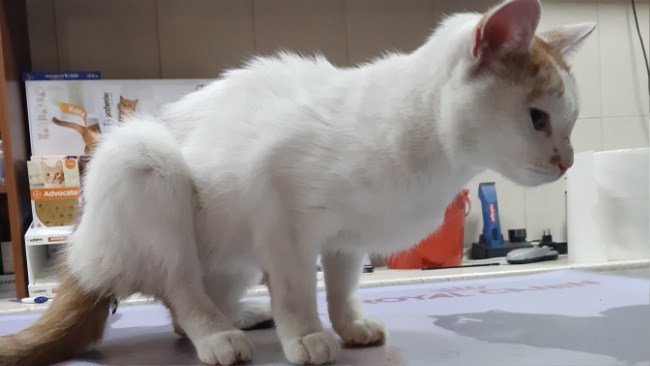 Kot jest w stanie złym, rokowania ostrożne. Nie można póki co poddać go dalszej diagnostyce, gdyż obecnie walczy o życie. Jego chude i wątłe ciałko musi odbić się. Jest karmiona wysokomięsnymi puszkami, żeby przyspieszyć ten proces. Dostaje również leki.