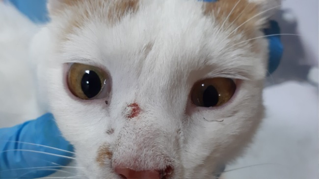 Nituś - potrącona kocurek, umierający z głodu i bólu.