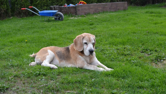 Z Kliniki pojechałem do hotelu dla zwierząt. Teraz w nim mieszkam. Jestem na emeryturze. Jest tu bardzo fajnie - troskliwa opiekunka, dobre jedzenie, zielona trawa i inne beagle.