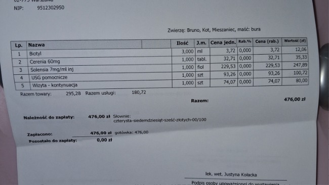 Dotychczasowe wydatki na Brunia to kwota około 20 000 złotych, którą pokryła Fundacja Pomocy Kotom MRAU.