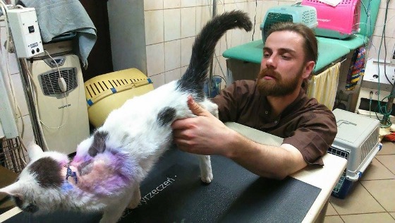 Na szcześćie kocurek w porę uzyskał pomoc i trafił pod opiekę wspaniałych Weterynarzy z Lecznicy dla Zwierząt "Gaja i Przyjaciele". Kocurek poza ranami i atopowym zapaleniem skóry, spowodowanym pogryzieniem przez pchły, ma również autoimmunologiczne zapalenie stawów, niezwykle bolesne, również powstałe w wyniku pogryzienia przez pasożyty i ich toksyny, stąd trudnosci w chodzeniu.