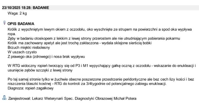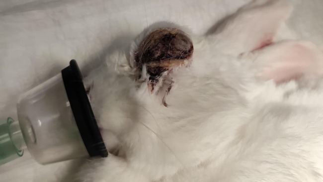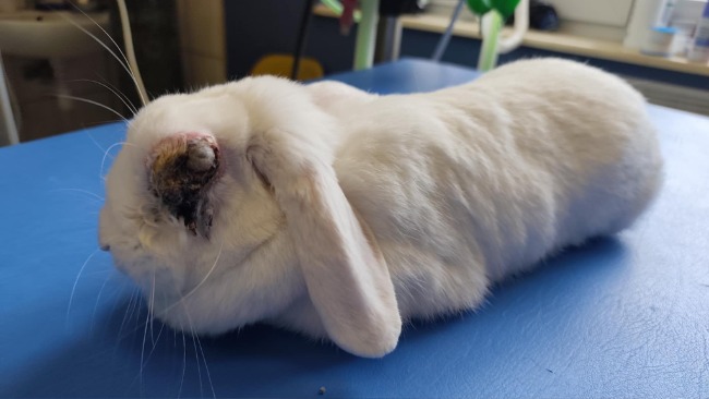 Dostaliśmy telefon z naszej przychodni, chwilę po tym zdjęcie. Króliczka została przyniesiona na eutanazję. Lekarz zaproponował zrzeczenie, właścicieli się zgodzili.