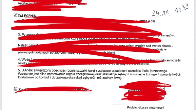 Arielka chwilę po zabiegu się zmieniła. Mało jadła i zrobiła się agresywna. Na RTG okazało się, że ma kolejne ropnie i kolejne zęby do usunięcia.