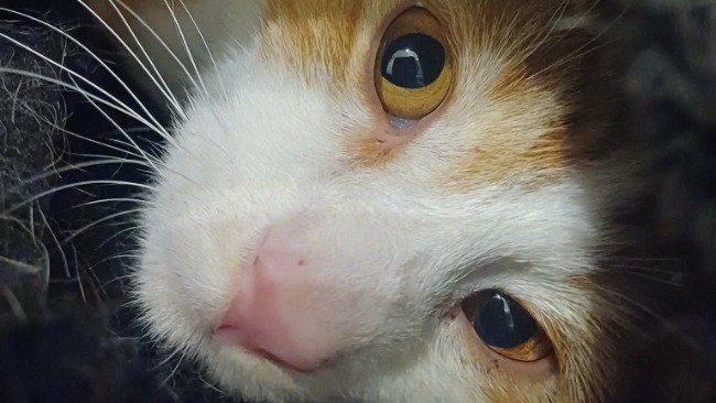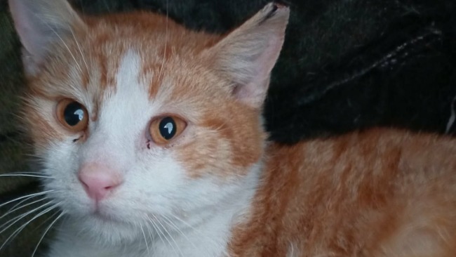 Otrzymał już pomoc lekarską, teraz przebywa w cudownym, cierpliwym domu tymczasowym i już wie, że głaskanie to sama przyjemność, nawet takie po brzuszku! Odpoczywa, z ciekawością wychyla głowę z posłanka-kryjówki i rozkosznie mruczy w cieple, pierwszy raz w życiu najedzony i bezpieczny.