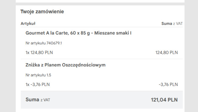 Bardzo Wam dziękuję za pomoc w zakupie saszetek dla kotów.
