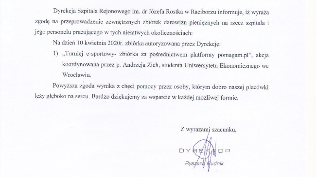 Zbiórka jest przeprowadzona za zgodą Dyrektora Naczelnego szpitala.