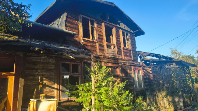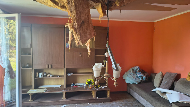 Dom jak widać na zdjęciach został doszczętnie zniszczony, stropy domu zostały uszkodzone, dlatego konieczna jest rozbiórka domu, a następnie jego odbudowanie.