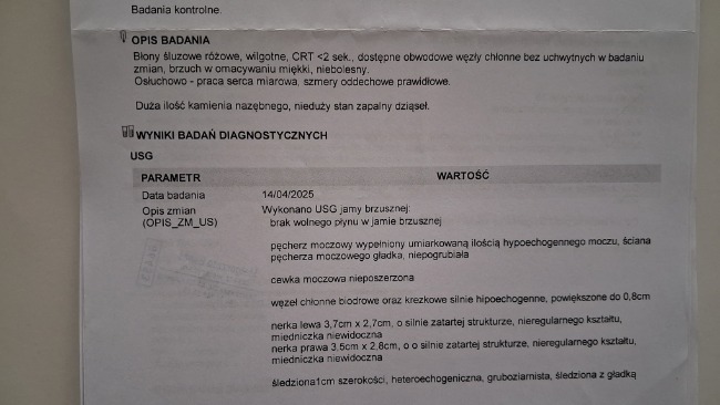 Potem jednak pokazałem jej swoją przepuklinę, która wyglądała jak duży guz - byliśmy na dwóch konsultacjach z USG i okazało się, że ktoś zrobił mi krzywdę. Doszło do rozerwania mięśni oraz pęknięcia czterzech żeber które powinny chronić moje narządy wewnętrzne. Mam też powiększone nerki, zmieniony fragment jelita i stan zapalny - podobno to niedobrze. Słyszałem też coś o możliwym nowotworze - chłoniaku dlatego wiem, że czeka mnie jeszcze kilka badań jeśli mój stan zdrowia będzie się pogarszał.
