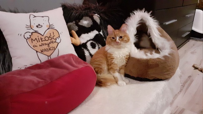 Następne pół roku minęło nam na walczeniu z przewlekłymi, uporczywymi biegunkami i próbie zdiagnozowania przyczyny. W grudniu trafiliśmy do przychodni weterynaryjnej Roch-vet, gdzie po szeregu szczegółowych badań krwi, USG brzucha, badań kału, wprowadzeniu specjalnej diety, antybiotyków i probiotyków udało się postawić Mango na nogi, biegunki minęły. Jako skutek biegunek i co za tym idzie długofalowego złego wchłaniania, kocurek miał spory niedobór witaminy B12, więc przez 6 tygodni przyjmował cotygodniowe bolesne zastrzyki, aby uzupełnić niedobór.