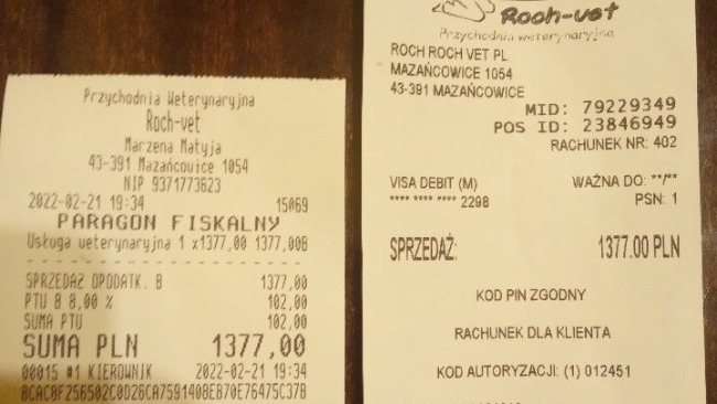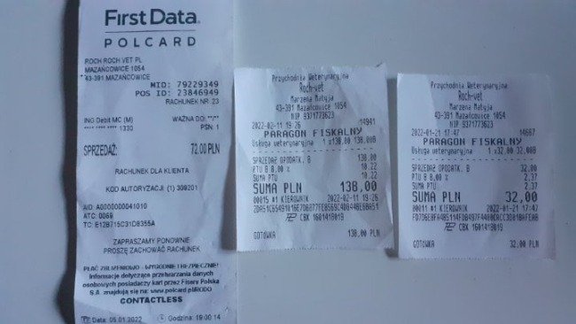 Wklejam część zaległych paragonów, jak tylko dostanę fakturę za obecne leczenie, umieszczę ją na zbiórce. Ja tego kota, mimo jego niepełnosprawności, mimo tego że bywa na skraju życia i śmierci pokochałam całym sercem. Proszę, pomóżcie mi kolejny raz pokazać mu, że jeszcze nie czas żeby odchodził.