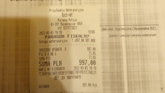 Niestety koszt jest przeogromny. Wstawiam kolejny paragon na kwotę 997zł i gorąco liczę na Waszą pomoc <3