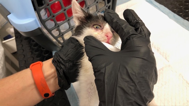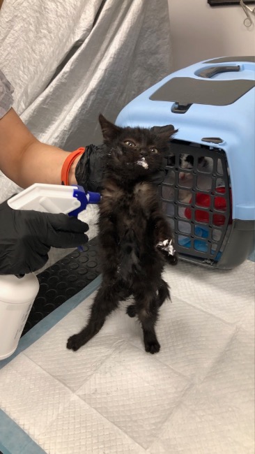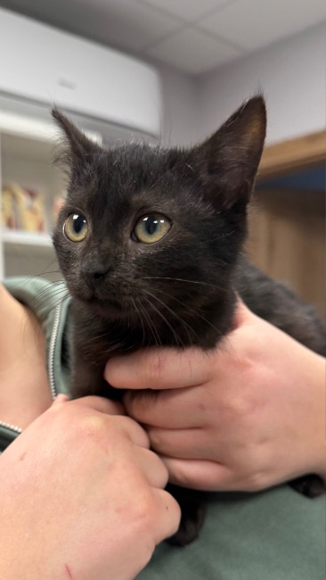 Na początku grudnia sytuacja niemal się powtórzyła. Pod nasze drzwi podjechał mężczyzna z dzieckiem i… kociakiem na rękach. Poinformował nas, że znalazł go na podwórku, gdzie trzyma psa — i że na pewno kota u siebie nie zostawi. Dodał też, że był tam drugi kociak, ale uciekł i prawdopodobnie pies już go dopadł. Usłyszeliśmy, że kota zostawia u nas albo gdzieś go wyrzuci.