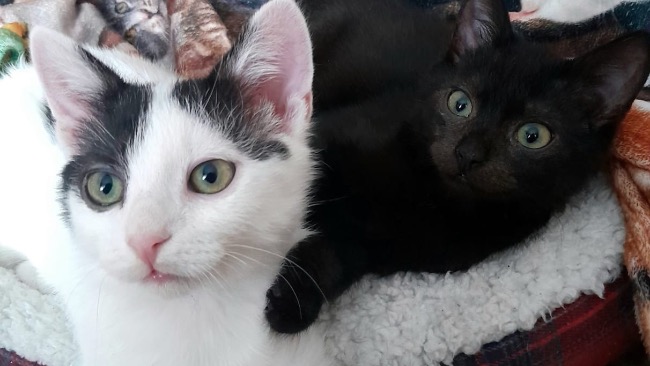 Na szczęście — po dwóch godzinach mężczyzna wrócił. Okazało się, że drugi kociak wciąż był na podwórku i nic mu się nie stało. I tak właśnie pod naszą opiekę trafiły Tarta i Bezik. 🐾