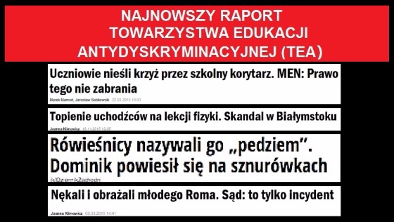 Wnioski z naszego poprzedniego raportu wydanego w kwietniu 2015 r. pod tytułem „Dyskryminacja w szkole – obecność nieusprawiedliwiona. O budowaniu edukacji antydyskryminacyjnej w systemie edukacji formalnej w Polsce” potwierdzają, że dyskryminacja w szkołach jest faktem. Dotyka ona uczniów i uczennic w każdym wieku. W znaczący sposób wpływa na ich bezpieczeństwo oraz możliwości uczenia się i korzystania z edukacji.