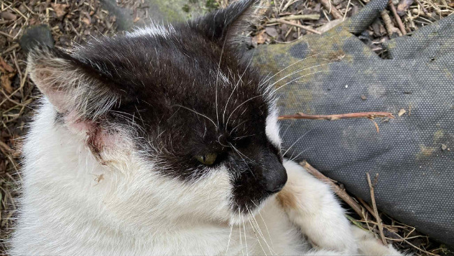 Skulony,nieruchomy, nie ma nawet sił prosić o ratunek :(