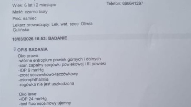 Operacja przepukliny i wiązadła została wyceniona na kwotę 4200 zl. Nie wiemy ile bedzie kosztowala amputacja oczka.