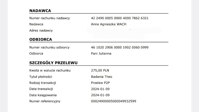 Edycja 2: przelew za opłacenie badań