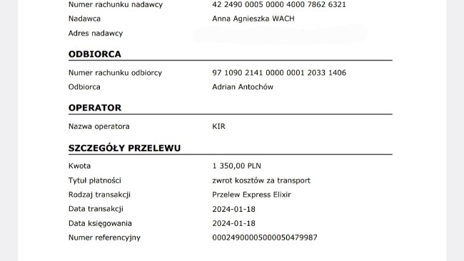 Transport Krakow- Bydgoszcz 600km w jedną stronę, to kwota 1350zl