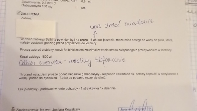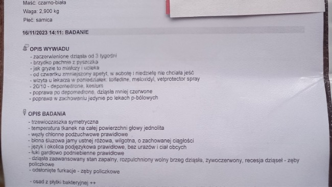 Balbinka ma 1 rok i2m-ce,przygaręłam ją aby nie trafiła do schroniska, teraz mamy WIELKI PROBLEM !!!Około m-c temu Pan Weterynarz z Iławy skierował nas do specjalisty stomatologa w Olsztynie, Diagnoza, Balbinka musi mieć usunięte wszystkie tylne ząbki(jak najszybciej) a koszt takiego zabiegu jest bardzo wysoki i mnie na to nie stać a poddać ją takiemu zabiegowi jak eutanazja nie mogę , nie mam sumienia. Zawsze i każdemu jak mogłam to pomagałam więc Bardzo proszę może ktoś o dobrym sercu mi pomoże ?! PROSZĘ O ZŁOTOWKĘ WPŁATY ponieważ Balbinka nie może być non-stop na lekach przeciwbólowych, staram się jak mogę jej pomóc(miksuje jedzenie ,wszystko oprócz cieczy) ZAWSZE JEST NADZIEJA .....