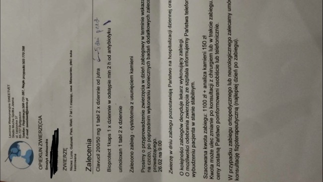 W poniedziałek na 26.02 Luna ma zaplanowany zabieg cystomii z usunięciem kamieni, chciałabym móc jej jak najszybciej pomóc i ulżyć w bólu.
