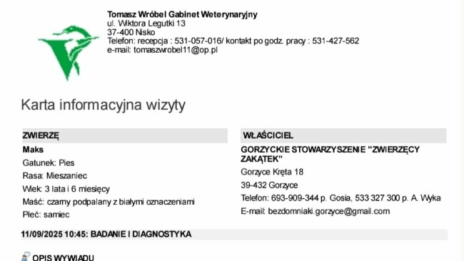 Wczoraj usłyszeliśmy diagnozę, która złamała nam serca. Dziś Maksio przeszedł poważną operację – lekarze walczyli o jego łapkę przez wiele godzin, ale pomoc przyszła zbyt późno. Jedynym wyjściem była amputacja, by uwolnić go od ogromnego bólu. Teraz nasz dzielny trójłapek dochodzi do siebie pod troskliwą opieką personelu Wróbel Gabinet Weterynaryjny.
