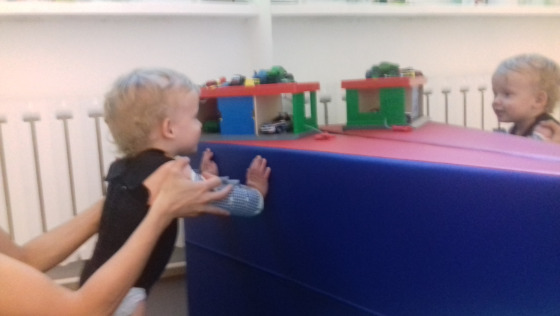 Uczę się chodzić do boku, podpierając się o ścianę. Mega wyzwanie! Ale jak zwykle bardzo się staram :) W końcu czekają na mnie auta! :)