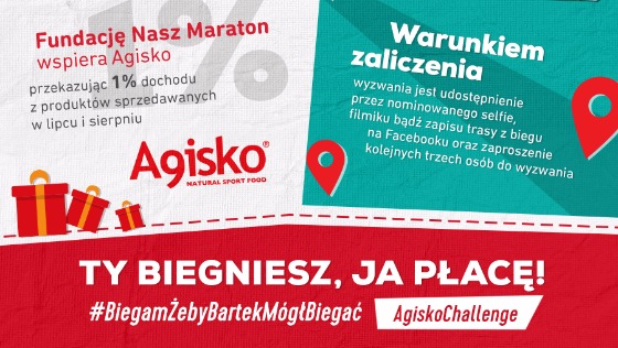 W robieniu dobrych wyników dla Bartka biegaczy wspiera Agisko, które w czerwcu i lipcu z każdego sprzedanego produktu przekaże 1% na rzecz Fundacji.