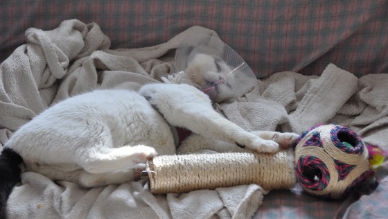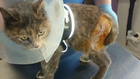 Kolejna faktura na 590 zł za amputację ogona przy miednicy. Kotka została sama na opuszczonej działce, gdy właścicielom spalił się dom. Razem z psem Horusem trafili do mnie...